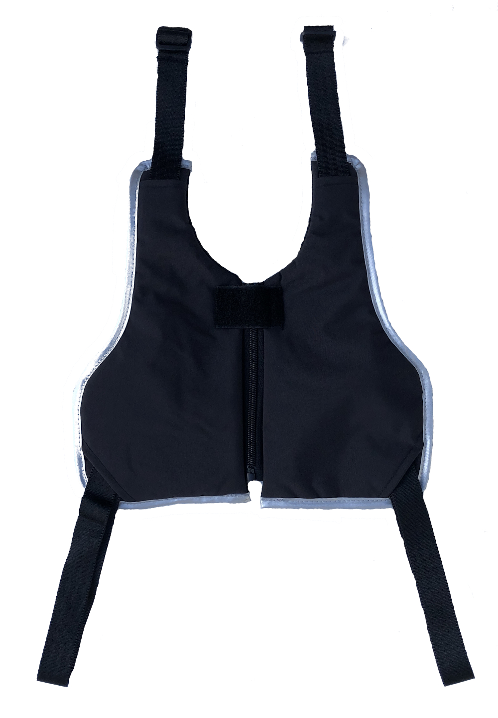 Fits to, and covers the seat harness. Padded with 'breathable', user friendly fabric. Larger than the alternative Chest Pad Red and and Chest Pad Blue. Image shows the reverse of the Vest, on the front a central zip zipper has a vecro cover to reduce chance of child undoing it. Note. This is NOT a high security escape proof harness Fabric Size approx: 30cm (12") x 30cm (12") Instructions Compatibility - this product can be used with the DoBuggy, Maclaren Major Elite, Mobiquip (MQ XL) and Excel Elise Neo pushchairs.
